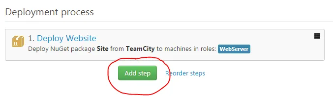 First, we’ll go into our Octopus Deployment Process for our project and select “Add Step“.